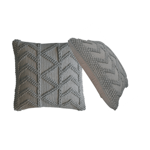 Featuring a zig-zag design, this fabulous Alda Cushion Set will add a stylish touch to any room of the house. Alongside the design, the modern grey colourway and plump filling will complement an array of decors beautifully.This product is handcrafted individually and as every piece is unique please do expect variations in finish, texture, size and should not be considered as a defect.