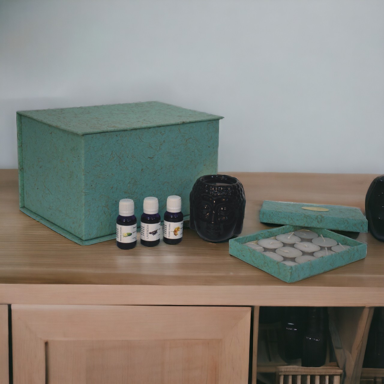 This attractive Black Buddha head oil burner will complement any room and allow you to enjoy hours of burning fragrances. Perfect for use in the living room or bedroom, and makes an ideal gift for friends and family. The set includes a burner, aroma oil in Ylang Ylang, White Lotus, Lavender and unscented tealight candles. Put the tealight at the bottom and the wax melt at the top to allow the relaxing fragrances infuse your home.