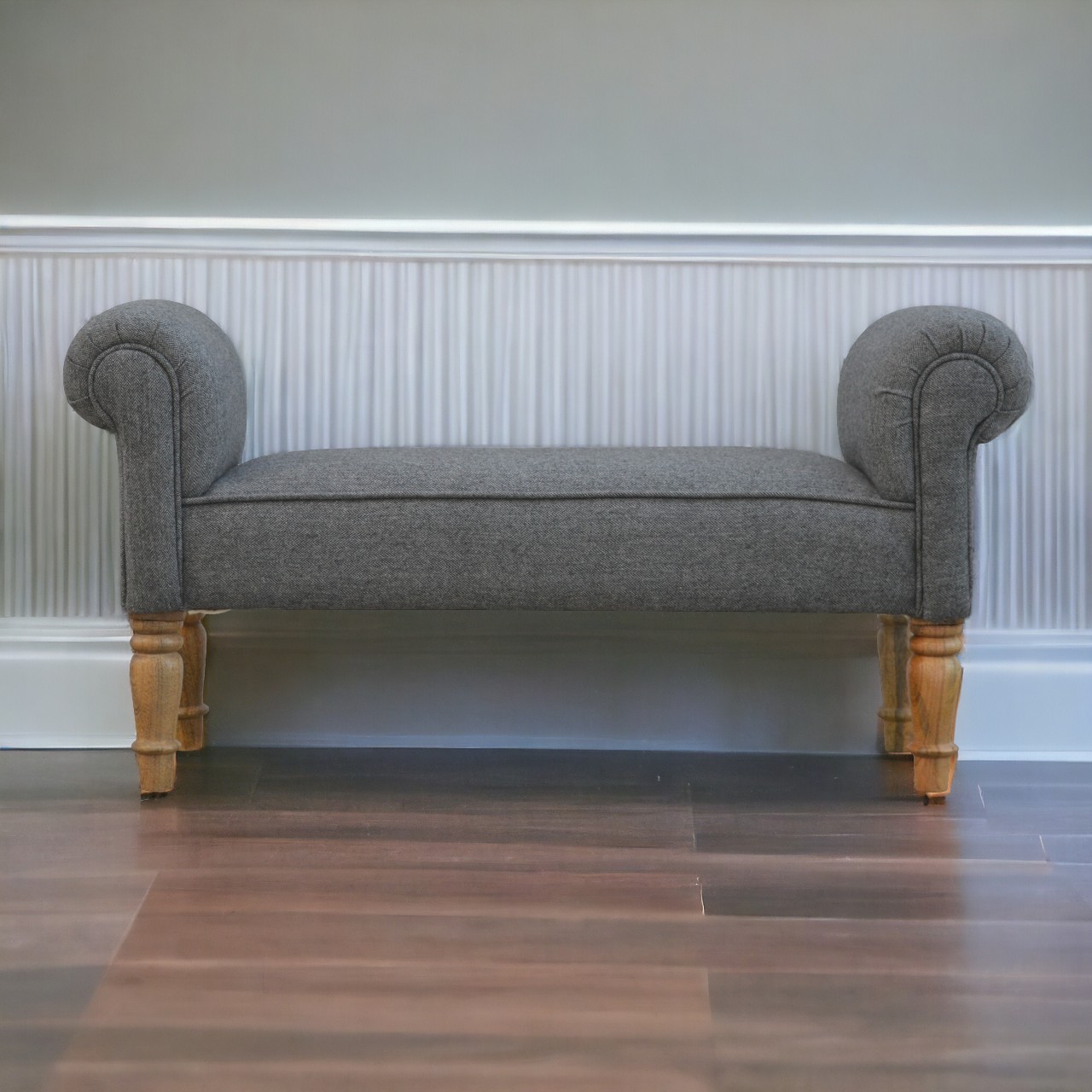 Refined Elegance Meets Versatile Comfort: The Black Tweed Bench with Turned Feet