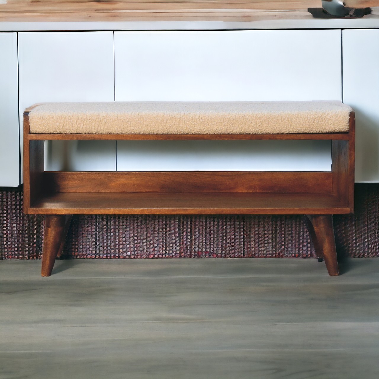 Sustainability isn’t just a buzzword; it’s a committed practice that this Boucle Nordic Storage Bench embodies. The use of mango wood—a robust, renewable resource—echoes the principles of environmentally conscious manufacturing. The chestnut finish applied is the result of thoughtful, eco-friendly methods, championing the cause of minimal environmental footprints while ensuring you receive a product that is safe, non-toxic, and aligned with the values of a sustainably-minded household.