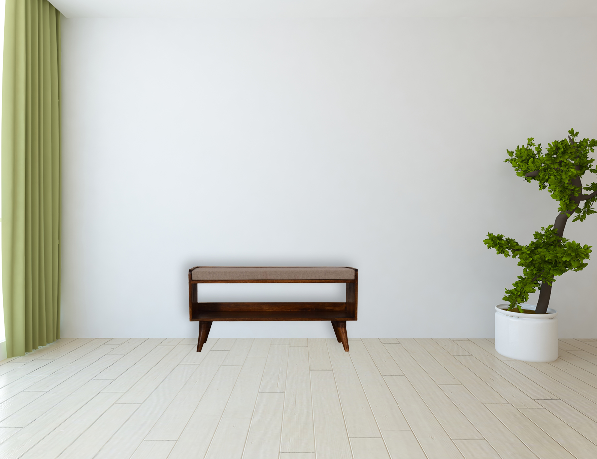 Experience Comfort and Style with the Timeless Brown Tweed Seat Pad Bench