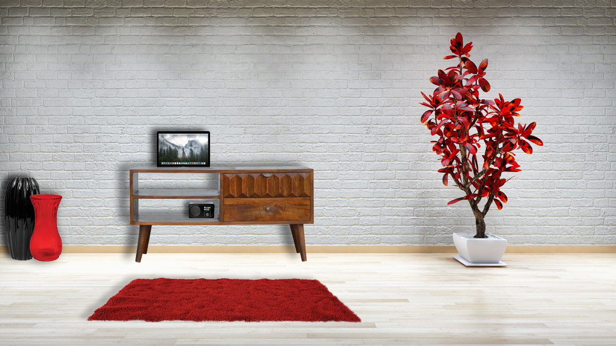 The Chestnut Prism Media Unit embodies the principles of sustainability from its very core. The use of solid mango wood, a renewable and eco-friendly resource, ensures the unit’s strength and longevity. Our dedication to eco-conscious finishing processes comes through in its natural oak-ish finish, maintaining environmental integrity without compromising on quality or durability. By bringing this media unit into your home, you become part of the solution, choosing furniture that supports environmentally-sound practices and contributes to the well-being of our planet.