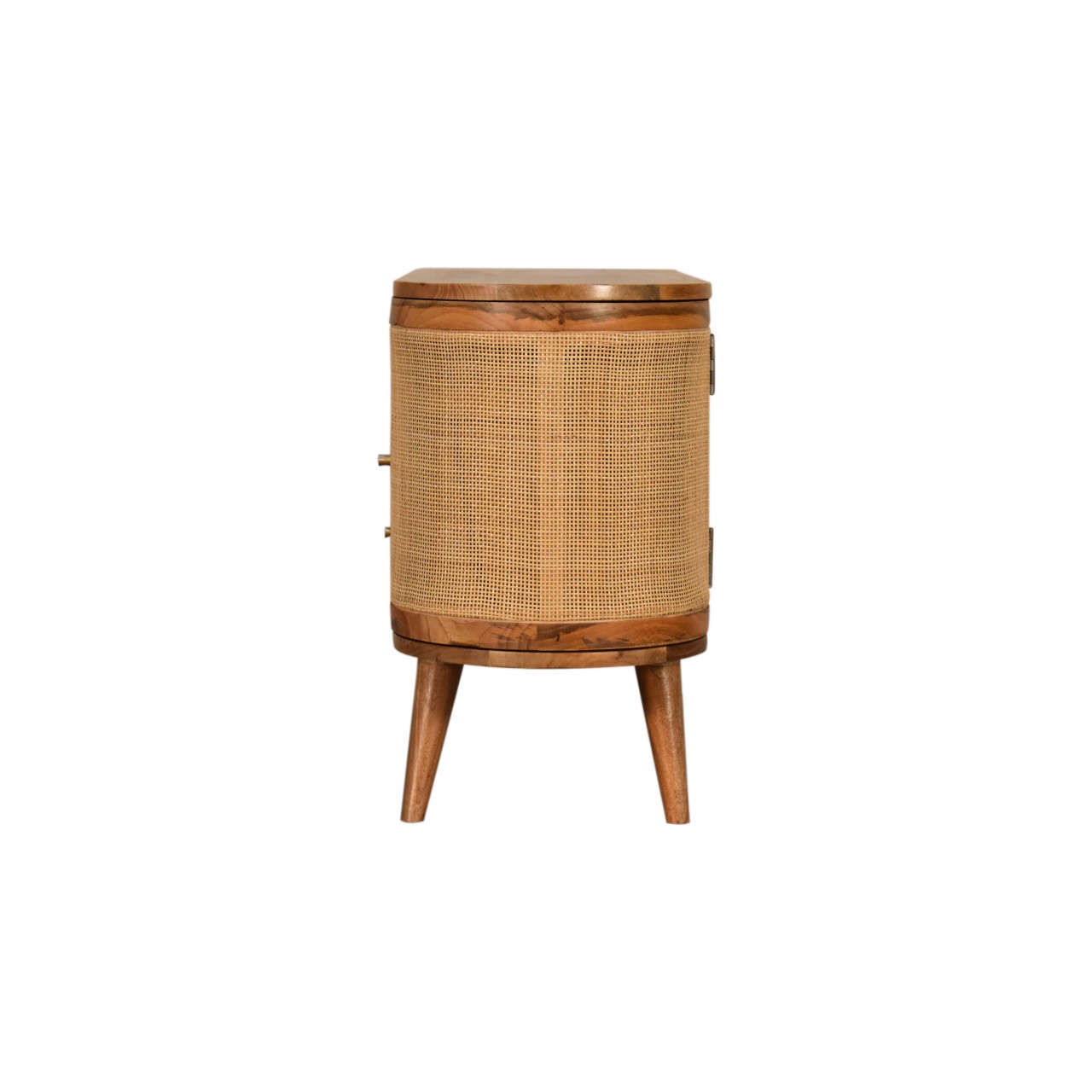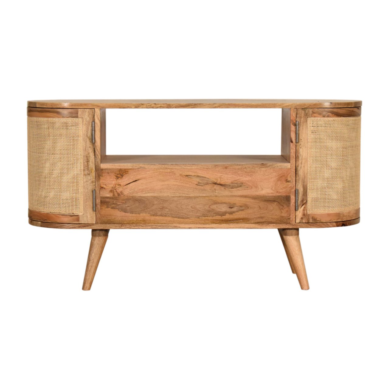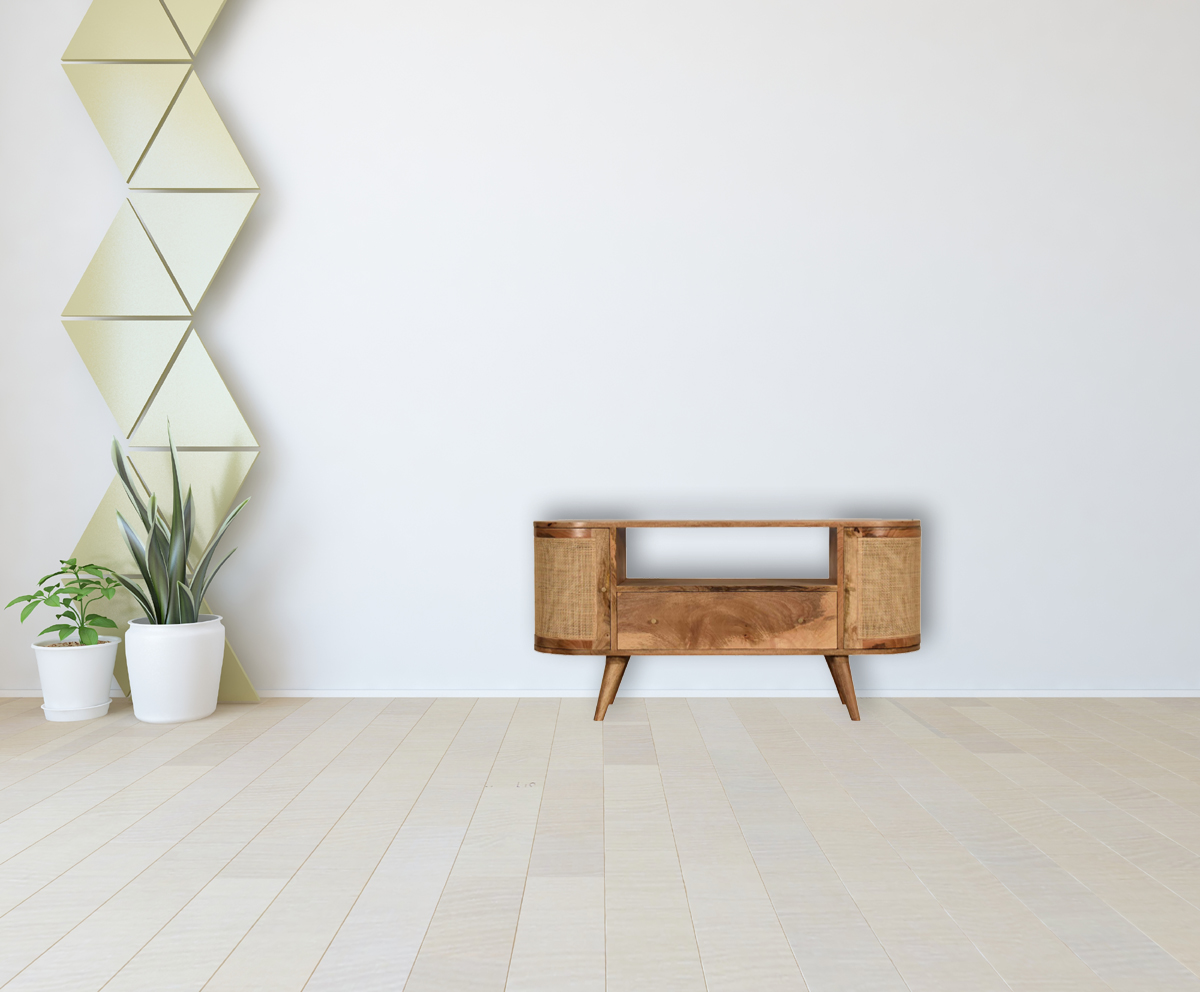 Constructed meticulously from 100% solid mango wood, our media unit is characterized by its durable essence and graceful oak-ish finish. The Close-knit Sofia Media Unit’s body and legs exude a warm, natural charm that invites admiration and interaction. Its two close-knit door fronts are a testament to the forethought given to both privacy and panache, giving you the ability to store away your media essentials whilst keeping them conveniently accessible.