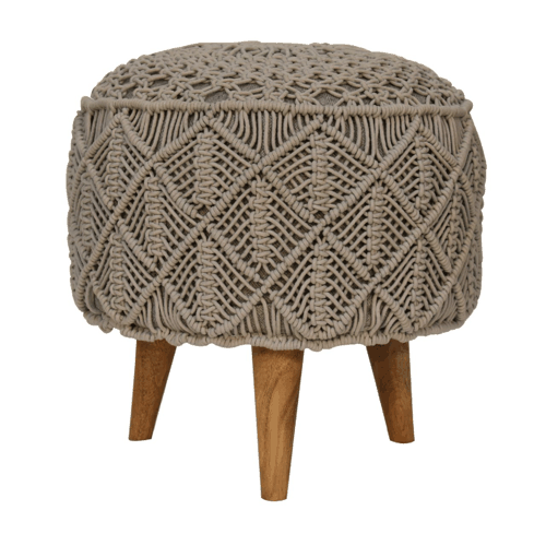 Handmade Furniture: Our Crochet Grey Footstool is a fine example of handmade furniture, crafted by skilled artisans who bring their expertise and passion into every knot and stitch. Each stool is a unique piece of art, blending traditional craftsmanship with modern design to create something truly special. This dedication to handcrafting ensures that every footstool is not only functional but also a testament to the rich heritage of artisanal work.