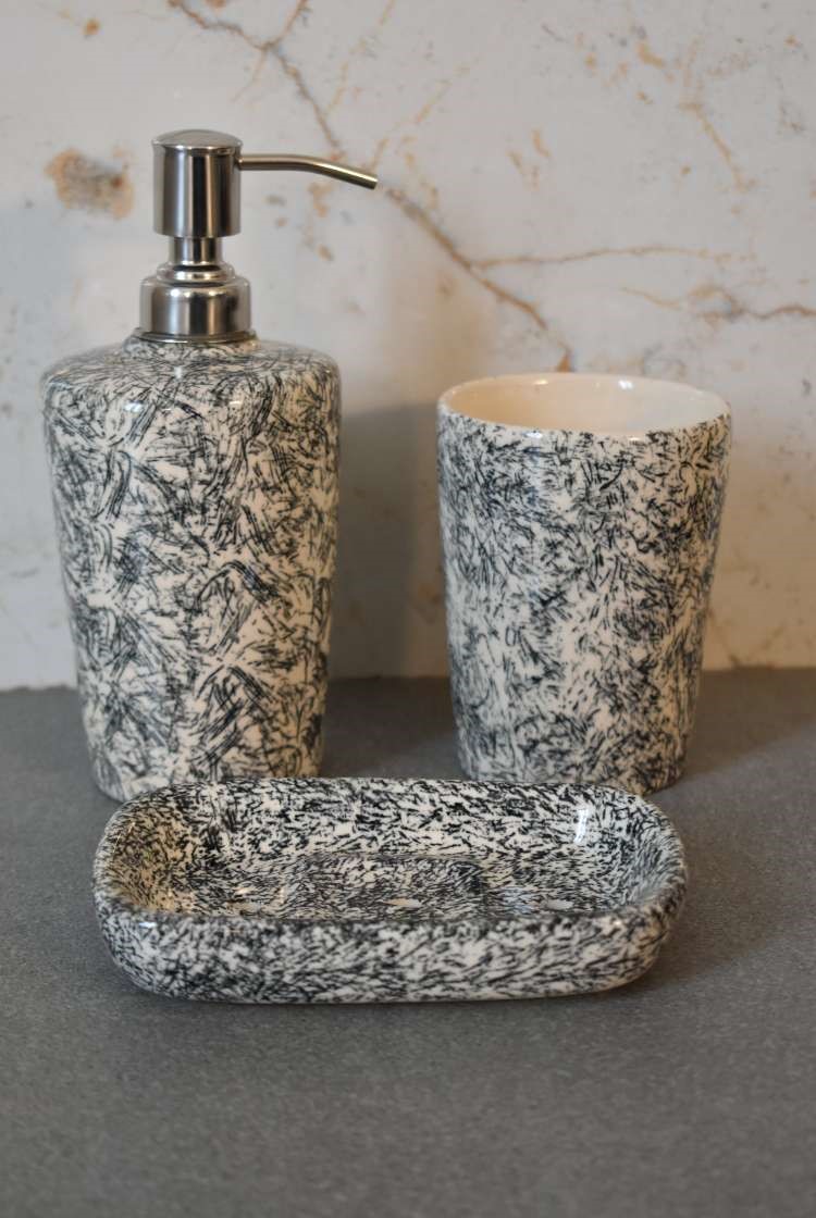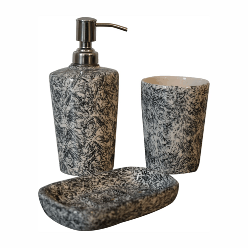 Transform your bathroom into a sanctuary of style and sophistication with the Daphine Bathroom Set of 3. This exquisite set, crafted from high-quality porcelain, is designed to complement neutral interiors effortlessly, adding a touch of elegance and refinement to your space. Comprising a sleek soap dispenser, a chic soap dish, and a stylish toothbrush holder, the Daphine Bathroom Set epitomizes functional beauty, ensuring your bathroom essentials are organized yet aesthetically pleasing.