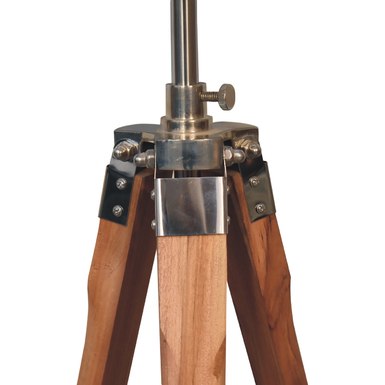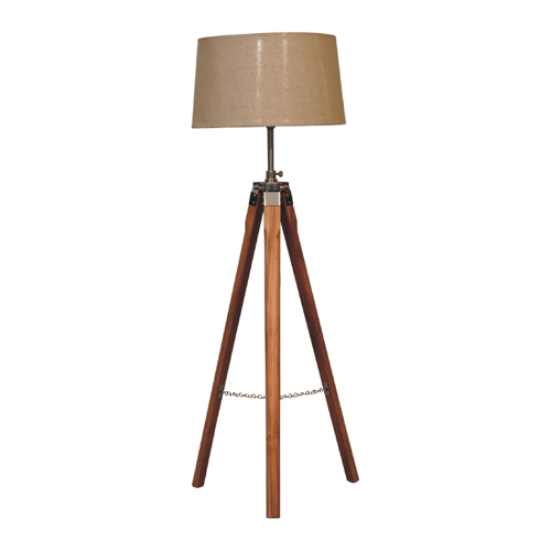 This contemporary floor lamp features a fixed wooden tripod design base in teak wood as well as a neutral lampshade which will provide stability as well as a natural colourway and soft contrast. It is bound to inject both a modern and rustic touch to your home décor.