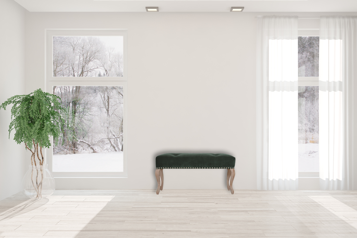 This elegant bench has been upholstered in a emerald green cotton velvet fabric. It features carved French style legs constructed from 100% solid mango wood providing strength and durability along with a deep button and studded design. This simple yet classy piece can be incorporated in different home settings and interiors.