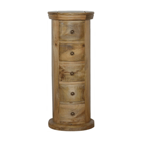 Discover the rustic charm and versatile utility of the Granary 5 Drawer Slim Drum Chest, a piece that exudes country elegance while offering smart storage solutions for contemporary homes. This meticulously handcrafted furniture piece is not simply an item of utility but a timeless artifact that brings warmth and character to any room it graces.