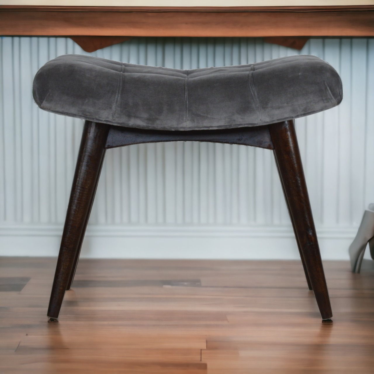 Enrich Your Abode with the Luxurious Comfort of the Grey Cotton Velvet Curved Bench