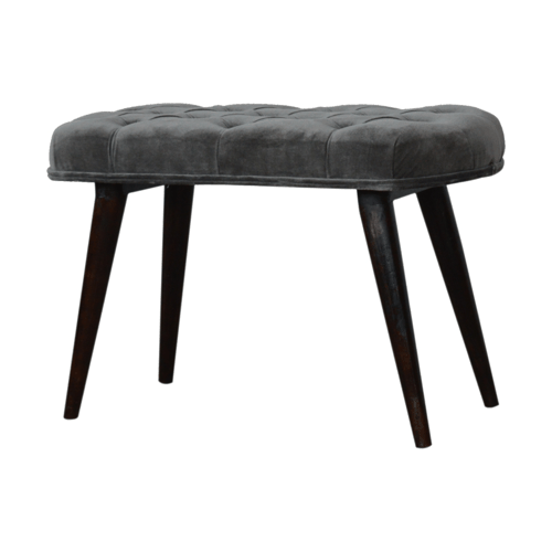 This versatile piece excels in comfort and style while also being built for durability. The solid mango wood legs are sustainable and known for their strength and resilience, ensuring that the footstool remains a cherished part of your home for years to come. The walnut finish of the legs provides a warm contrast to the cool grey velvet, creating a balanced and harmonious look that complements any color scheme or décor style.