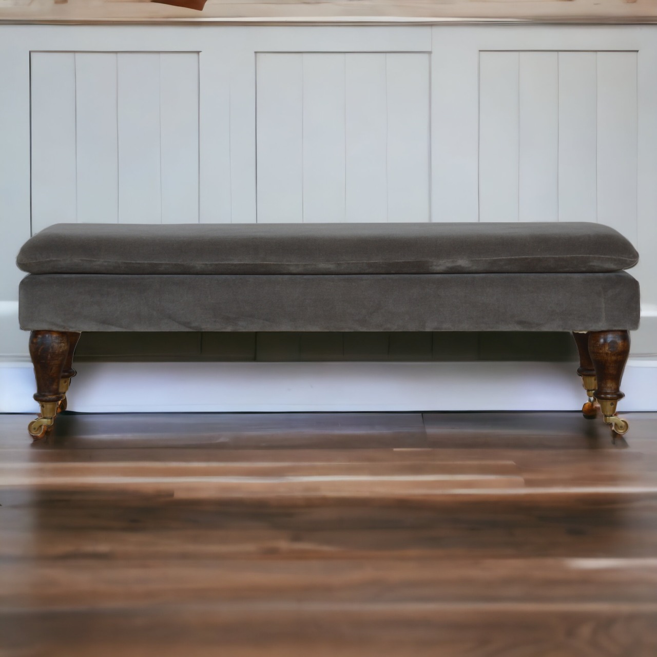 Graceful Serenity: The Grey Velvet Bench with Castor Feet
