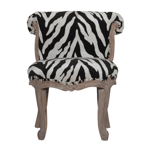 SEO Optimized Description:Discover the ultimate fusion of trendsetting style and enduring quality with our Zebra Printed Studded Chair, a luxurious addition to any home’s décor. Destined to garner admiration and ignite conversations, this chair’s stunning zebra print upholstery is a daring yet sophisticated choice for those who dare to make a statement. Each stripe, each curve of this extravagant piece is a walk on the wild side, yet the chair’s overall demeanour remains elegant, making it an inviting centerpiece or a head-turning accent in your living space.