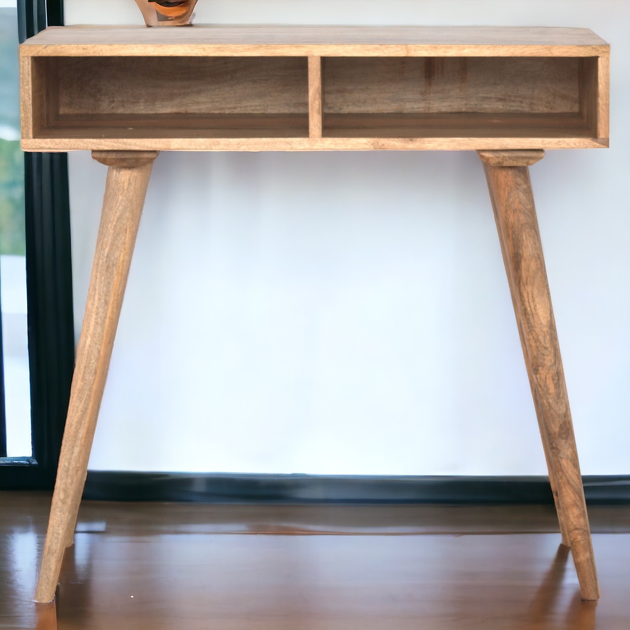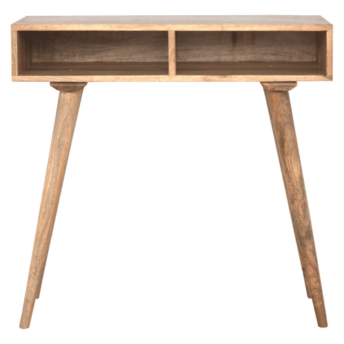 Elevate your home office or study area with the epitome of modern design: the Oak-ish Open Shelf Writing Desk. Seamlessly marrying aesthetics with functionality, this desk is meticulously crafted from 100% solid mango wood, providing a robust frame and a timeless appeal that complements any interior décor. Whether you are a creative professional, student, or someone who values an organized and beautiful space, this desk serves as the perfect canvas for productivity and inspiration.