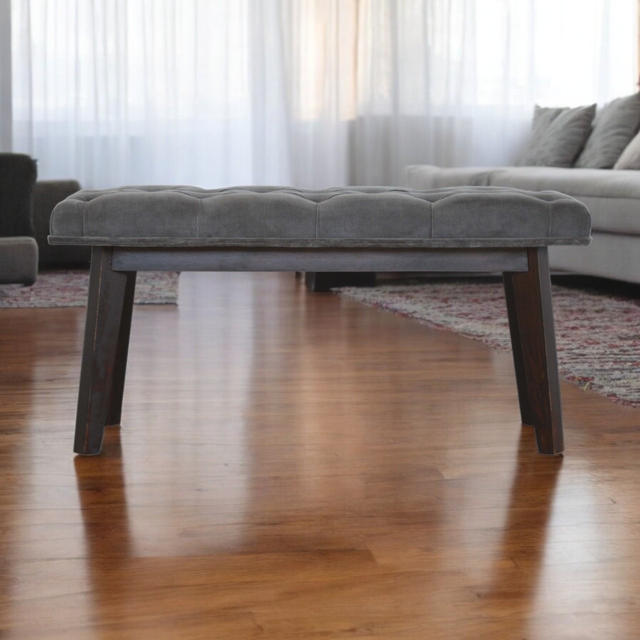 Handmade Indian furniture showcases the exquisite craftsmanship of local artisans. Each piece of our Grey Velvet Hallway Bench is meticulously crafted using traditional techniques and local materials. Supporting the skilled workmanship of these artisans, the bench delivers a functional, beautiful, and culturally rich piece. The individual nuances and unique touches in each bench highlight India’s rich heritage and the artisans’ dedication to their timeless craft.