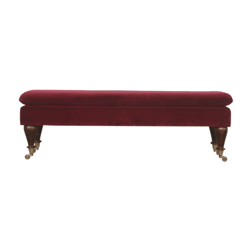 Trade Only Wine Red Velvet Castor Bench Suppliers