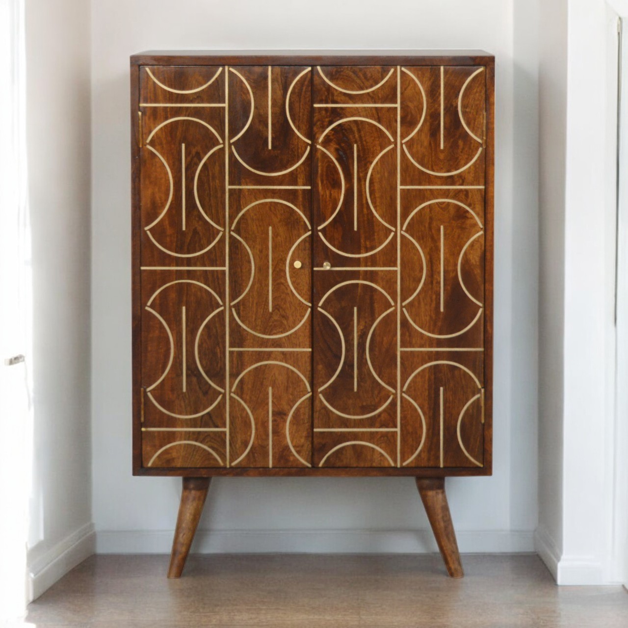 Embrace Elegance with the Chestnut Inlay Abstract Cabinet