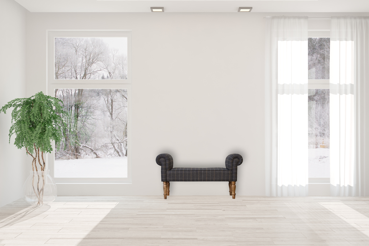 Update your home with this lovely country pewter tweed bedroom bench, perfect for a bedroom or any living area in your home. This bench features turned legs made of 100% solid mango wood in an oak-ish finish; ideal for a hallway, end of the bed or simply a standalone living room furniture. You may encounter variations from batch to batch hence if you are looking to pair products under similar room settings; you can opt for a bespoke order or take an informed decision about the possible variations.