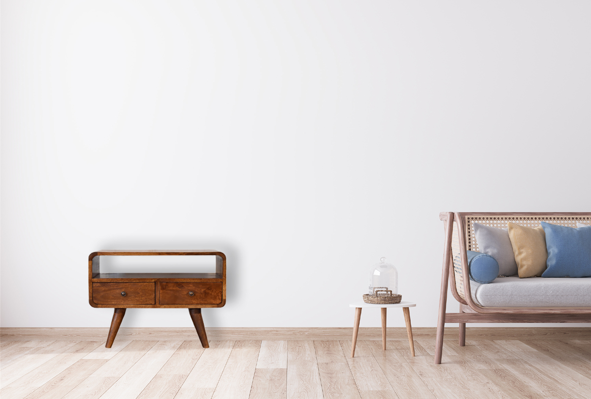 Dropship & Wholesale Mini Chestnut Curved Media Unit with 2 Drawers