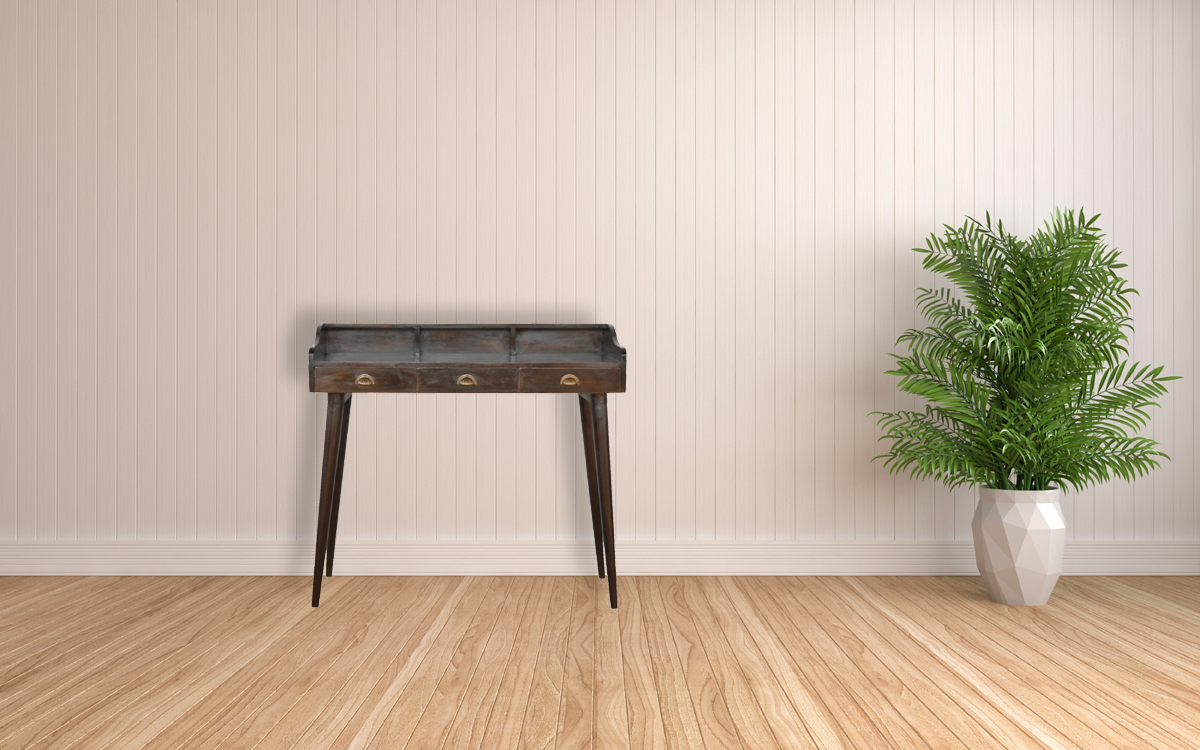 From the moment it graces your space, the desk asserts its utility with practical storage solutions. Equipped with three drawers, it provides secure and neat compartments to store your paper, stationery, and various sundries. The gallery back enhances the desk’s functionality, offering three additional slots for organizing correspondence, notebooks, or displaying cherished mementos. This thoughtful feature ensures that everything you need for a day’s work or creative session is within arm’s reach, thereby increasing your efficiency and comfort.
