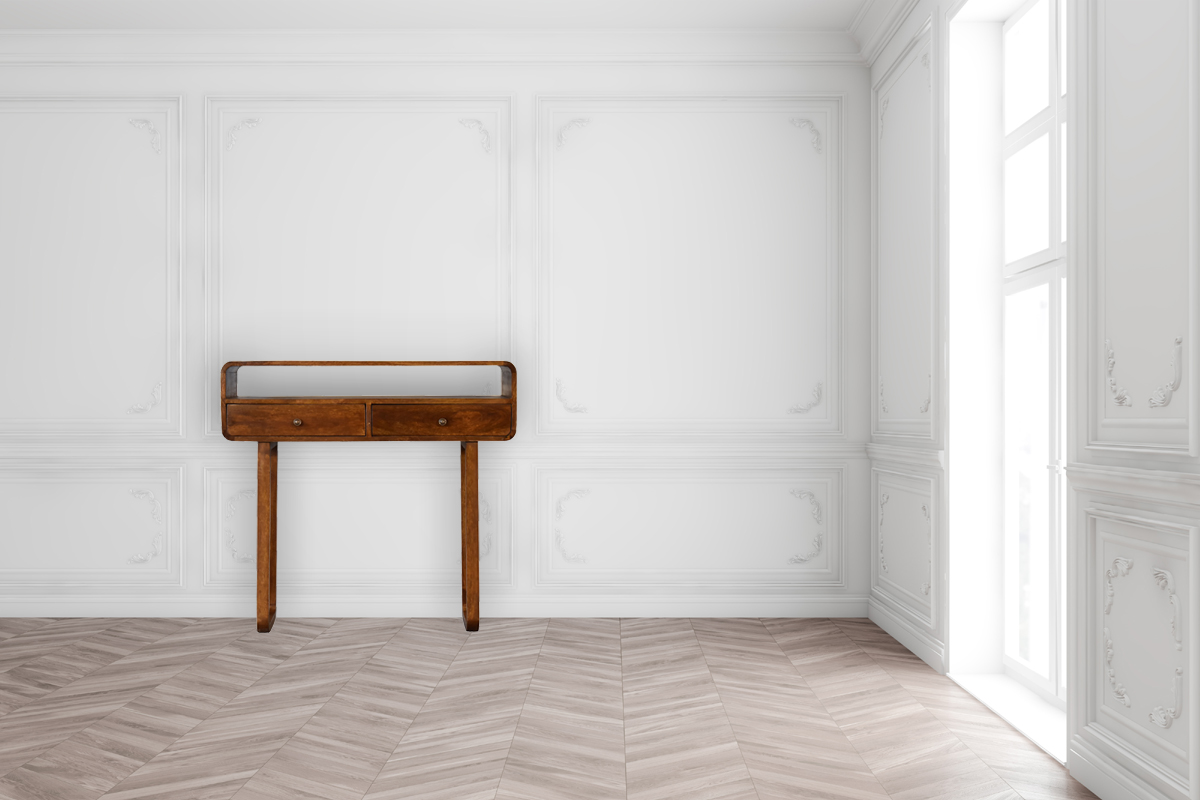 Embrace the Sophistication of the U-Curved Chestnut Console Table