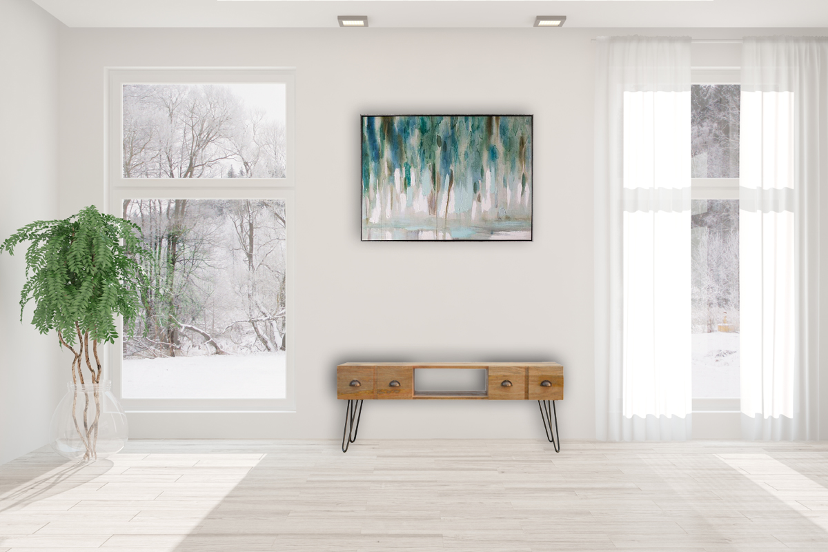 A simple yet beautiful industrial design,with simple lines to keep your entertainment station in stylish check. This media unit is constructed from 100% solid mango wood, and the base/legs are constructed from 100% metal Iron. Useful storage space is available with 4 drawers and a deep shelf in the Centre. Other features include a smooth oak-ish finish on the wood, triangular metal legs which have a pewter finish and are knock down but very easy to assemble, also the drawers come with shell handles made from brass.