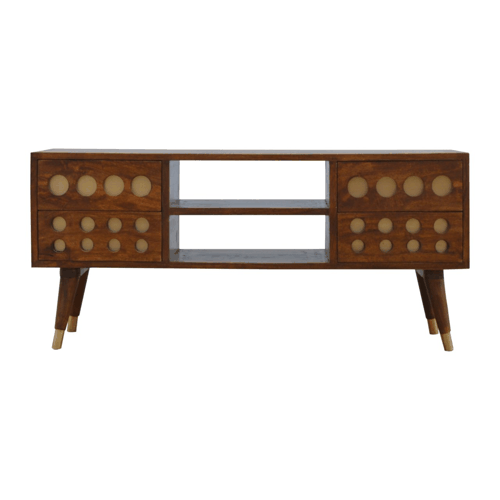 Elevate Your Entertainment Space with the Chic Brass Hole Inlay Media Unit