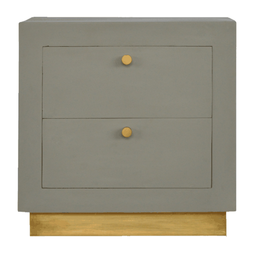 Crafted with meticulous attention to detail, the Sleek Cement Bedside is constructed from robust Mango wood with MDF sides, presenting a sturdy and long-lasting addition to your living space. Its standout feature, the cement finish, offers a unique texture that gracefully captures the essence of industrial elegance. Complementing this minimalistic grandeur is the exquisite golden base and detailing, which adds a splash of glamour and a touch of warmth to the cool, refined tones of the cement.