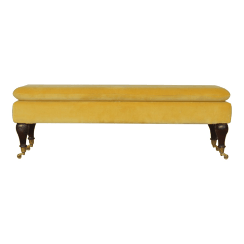 Dropship & Wholesale Mustard Velvet Castor Bench