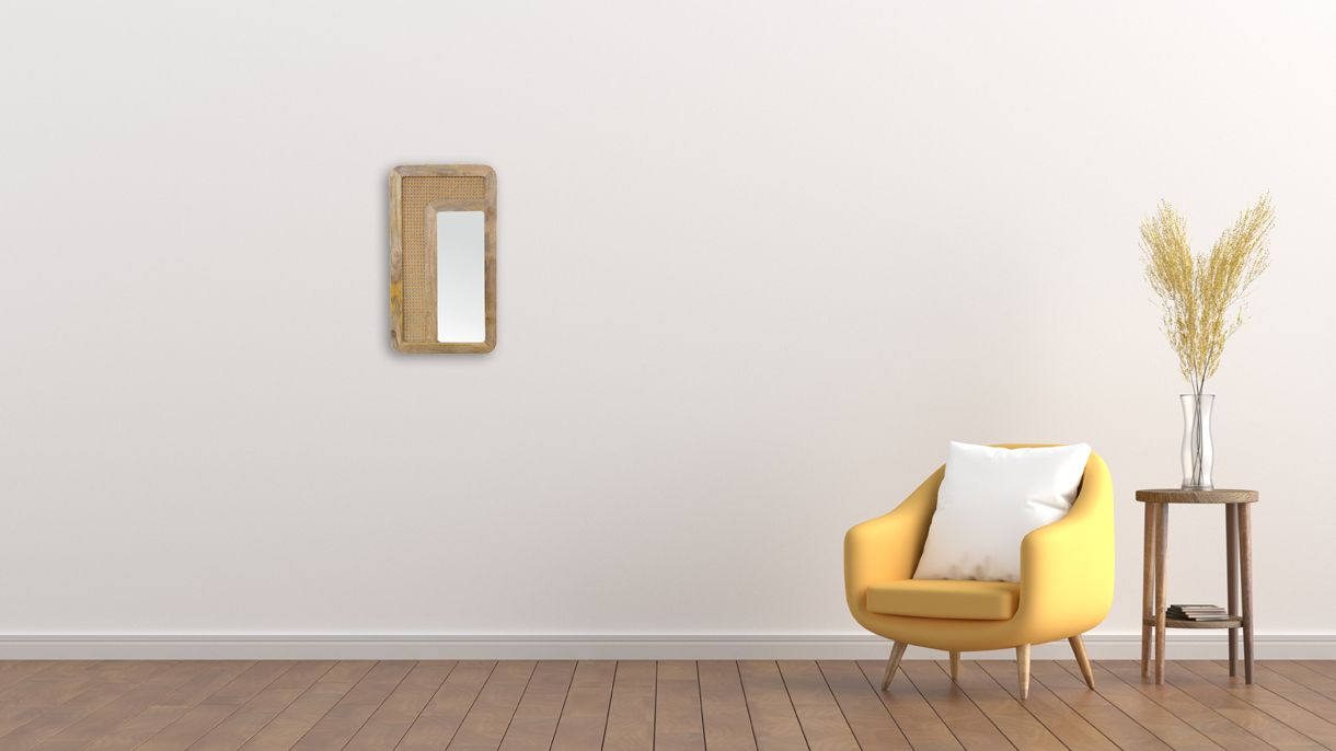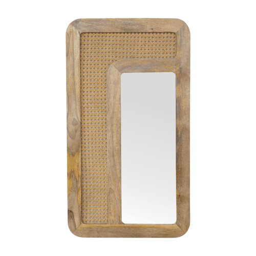 Immerse yourself in the understated sophistication of the Larissa Long Mirror, a beautifully designed mirror that encapsulates the essence of natural beauty and tasteful simplicity. Masterfully handcrafted from solid mango wood in a serene oak-ish finish, this rectangular mirror is the epitome of elegance and timeless design. Perfectly suited for the hallway, bedroom, or living room, its versatile rattan design and robust frame will seamlessly complement any space, nurturing a sense of warmth and homeliness that resonates throughout your abode.