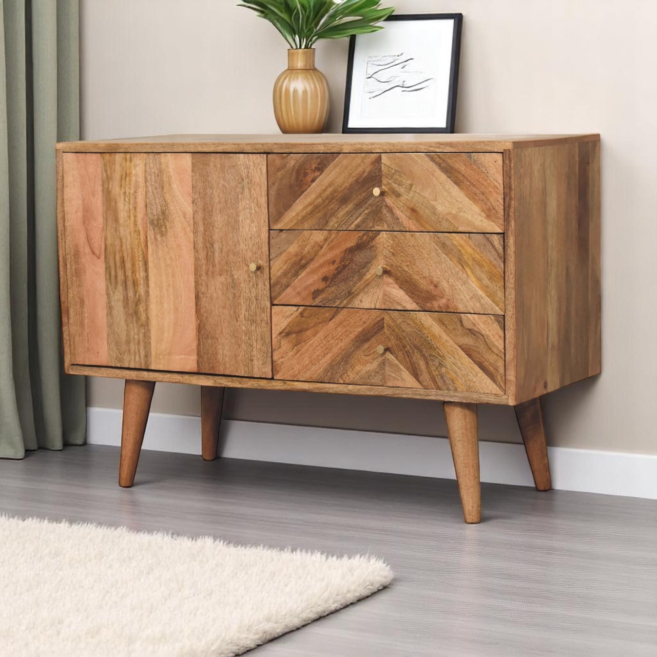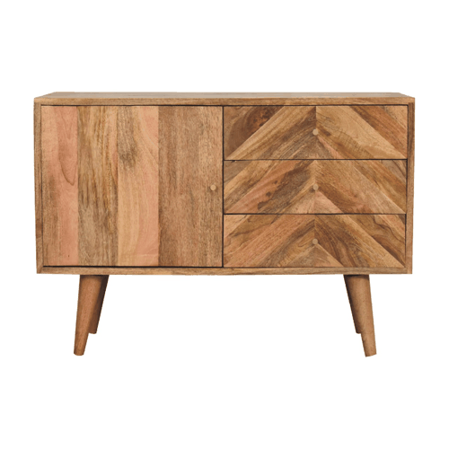 Crafted with exceptional care, the Muna Sideboard is created from high-grade materials that ensure longevity and durability. Its three drawers, adorned with straight and geometric patterns, offer plentiful storage space for your essentials, while the sophisticated cabinet provides discreet shelving for your additional belongings. Ideal for your hallway, living room, or even your dining area, this sideboard’s versatility is matched only by its beauty, catering to your organizational needs without compromising on elegance.