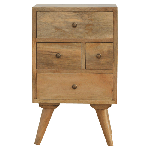 Discover the perfect blend of simplicity, functionality, and aesthetic appeal with the Nordic Style 4 Drawer Multi Bedside. This beautifully designed bedside table, constructed from 100% solid mango wood, is a testament to fine craftsmanship and the timeless charm that this exquisite piece brings to your home.