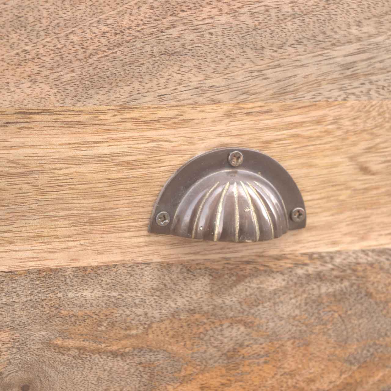 Crafted with an unwavering commitment to excellence, the Open Slot 3 Drawer Media Unit showcases impeccable craftsmanship and the timeless beauty of solid mango wood. The oak-ish finish enhances the natural grain and texture of the wood, ensuring that each piece boasts its unique character. This hand-finished media unit is not only sturdy but also environmentally friendly, assuring you of both durability and sustainability.