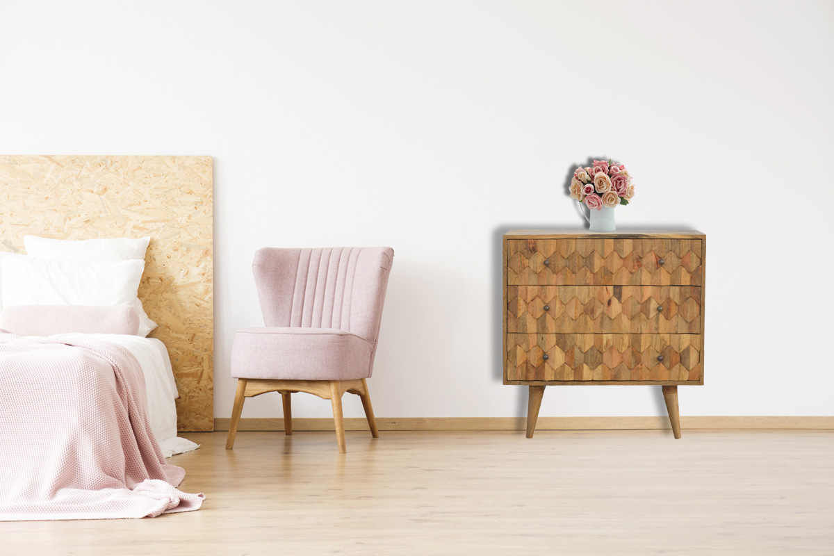 Immerse yourself in the ethos of sustainability with this chest of drawers, which is not just a visually appealing piece but a testament to eco-friendly practices. Mango wood, renowned for its strength and beauty, is also a sustainable option. The wood used springs from controlled plantations, ensuring minimal environmental impact and encouraging responsible forestry. With its natural finish, you support ecological stewardship, helping to safeguard our planet for future generations.