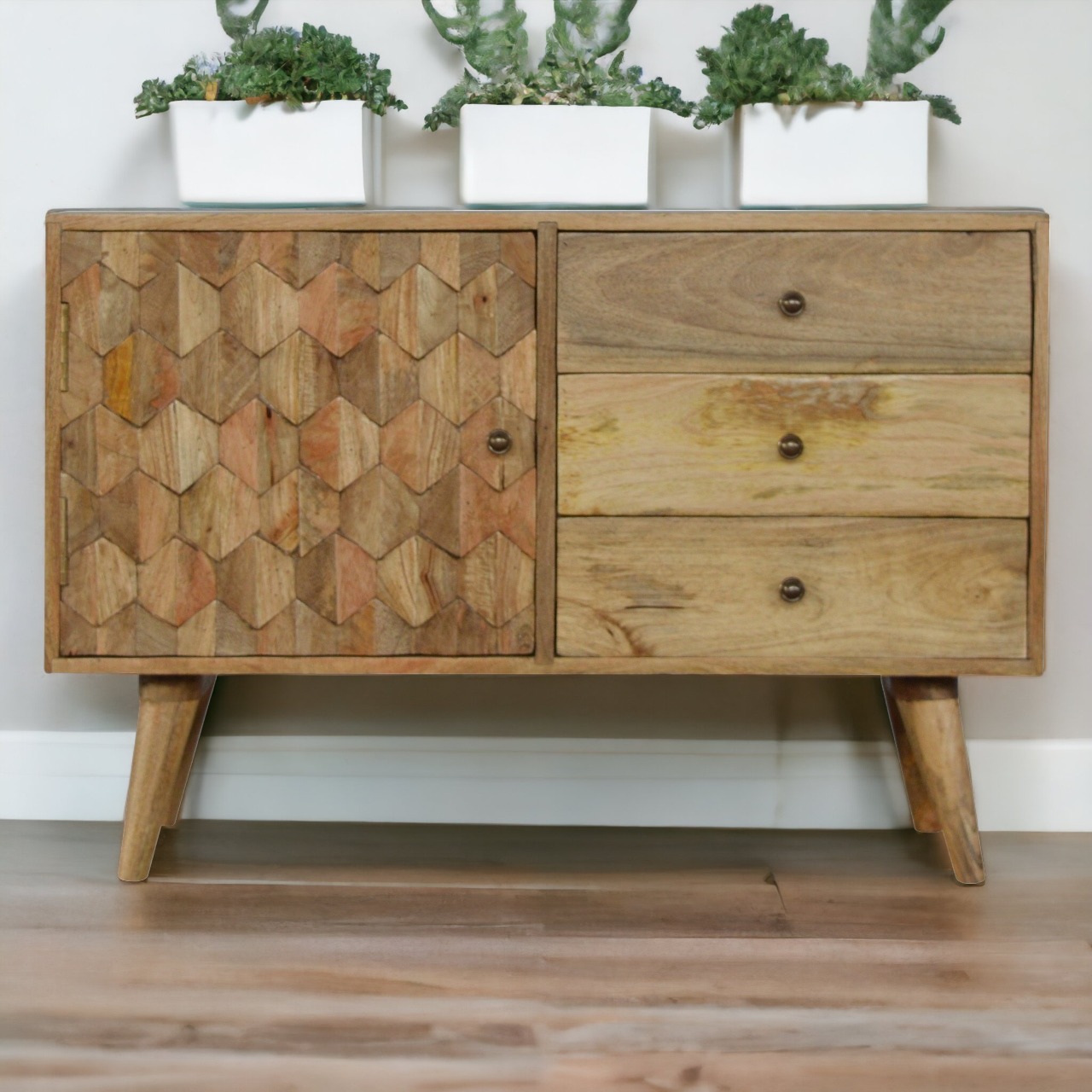 This furniture product epitomizes sustainability, crafted from eco-friendly mango wood—a renewable resource known for its durability and beautiful grain. Its natural oak-like finish is achieved through eco-conscious processes, minimizing environmental impact and upholding responsible waste management. By choosing this sideboard, consumers demonstrate their support for sustainable practices, contributing to the conservation of natural resources and promoting a healthier planet.