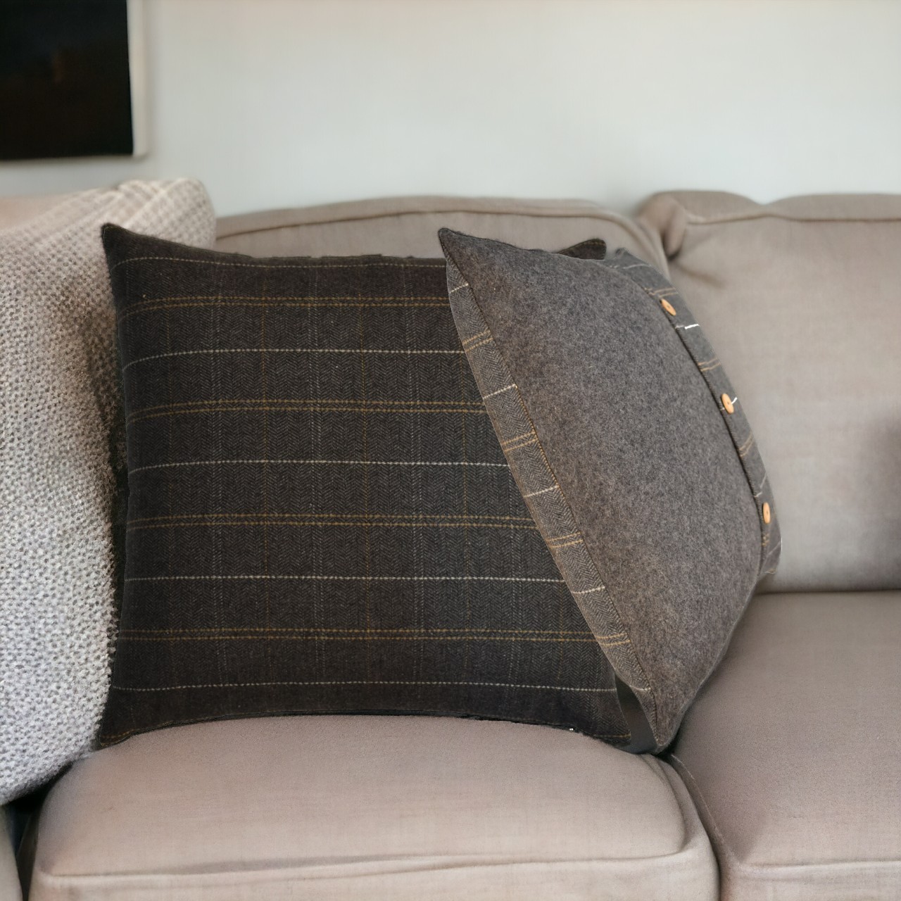 Indulge in the luxurious embrace of the Quinn Half Pewter Cushions, your newest home adornment that infuses a dash of classic charm into any space. Renowned for adding layers of comfort and elegance, these cushions elevate your living experience, making every room look and feel more inviting and warm. Perfectly suited for your designer seating or bedding area, these pewter-hued tweed pillows serve as versatile accessories that blend seamlessly with a range of complementary colors and decor styles.