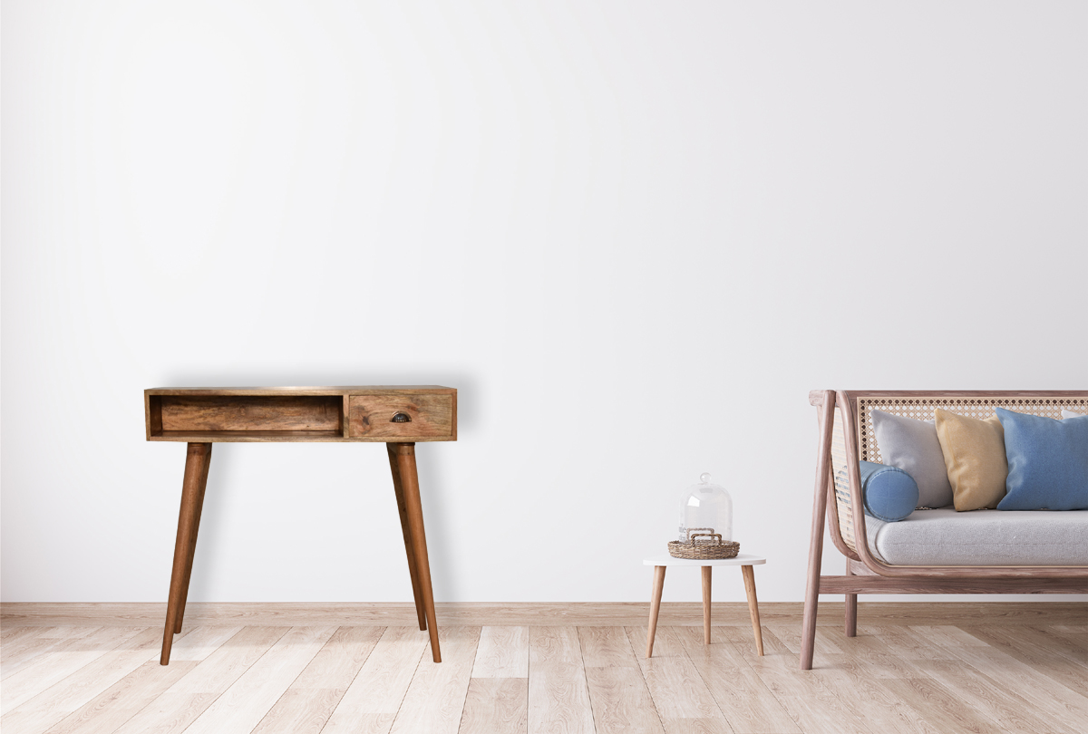 The Open Slot Cable Writing Desk is not merely a piece of furniture; it is a stand for sustainability – carved from mango wood renowned for its durability and sustainability. The wood’s journey from tree to desk is marked by environmentally conscious practices, ensuring that its production leaves the smallest ecological footprint possible. By inviting this piece into your home, you contribute to the movement for a healthier planet, where the beauty of nature can be celebrated without compromising its future.