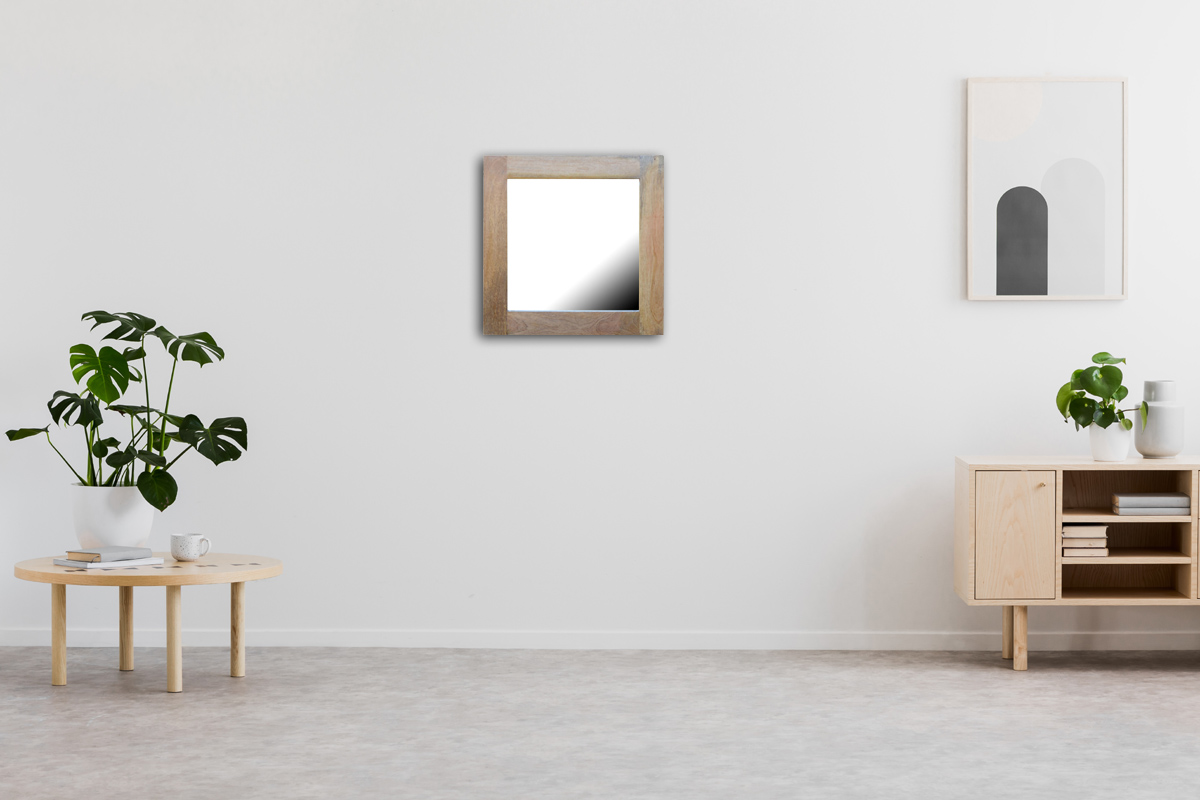 Discover the perfect blend of simplicity and sophistication in our Square Wooden Frame with Mirror, an exquisite addition to any home décor. Crafted with meticulous attention to detail, this mirror embodies the dual charm of modern and rustic design, making it a versatile piece that enhances any interior space. The high-quality square mirror set within a handcrafted solid mango wood frame exudes a warm oak-ish finish, reflecting a commitment to craftsmanship and authenticity. This stunning piece is designed to fit seamlessly into any room, adding a touch of elegance and functionality.