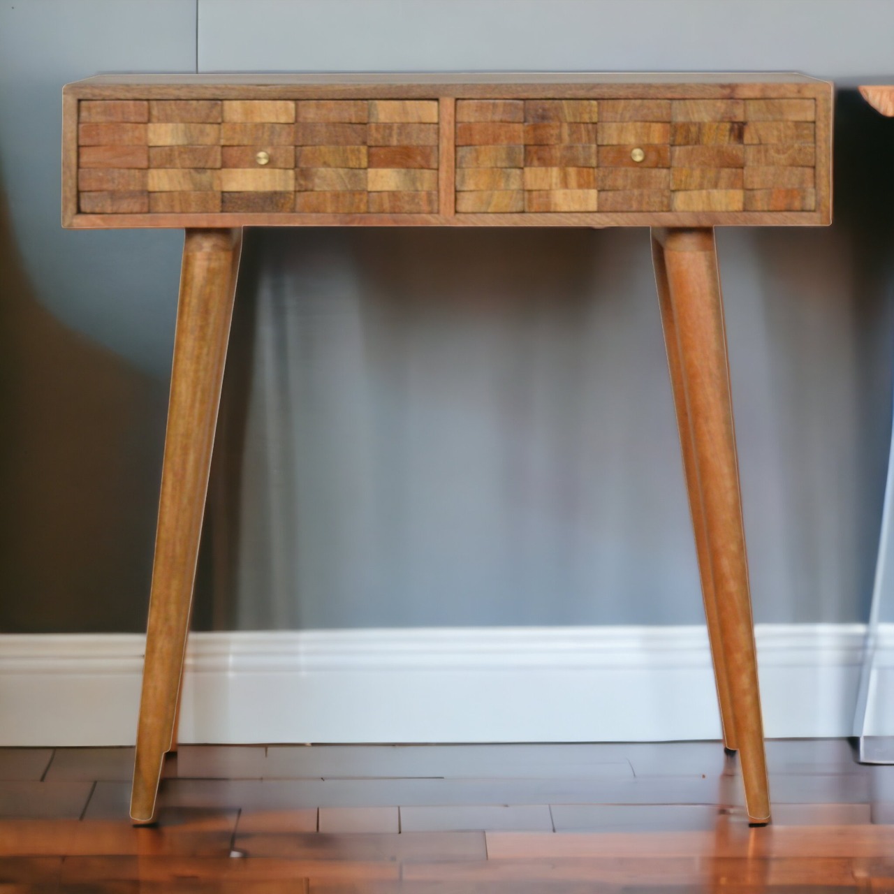 Embodied in this piece is the true spirit of sustainable furniture design, utilizing the renewable strength of mango wood to forge a creation that’s as responsible as it is beautiful. Employing practices that minimize the ecological footprint, from careful resource management to responsible waste disposal, this console table reflects your commitment to eco-friendly choices. The oak-ish finish is achieved through methods that respect the environment, giving you a functional work of art that aligns with your principles and supports the health of our planet.