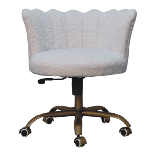 Immerse yourself in the cloud-like comfort of the White Boucle Swivel Chair, a captivating statement piece that blends sumptuous texture with unparalleled functional elegance. Perfectly at home in any bedroom or study, this snow-white occasional chair transcends mere functionality to become the cherished highlight of your living space.