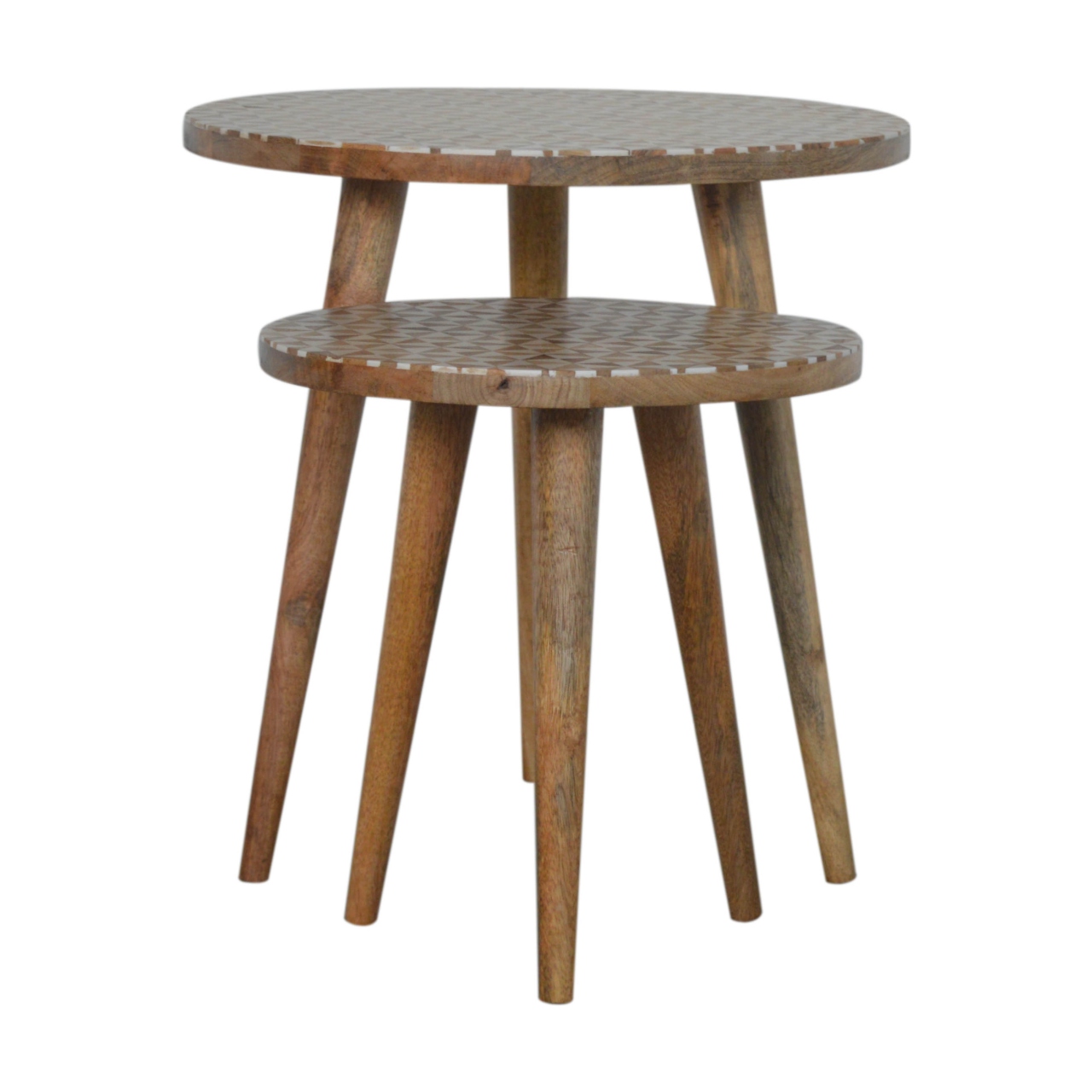 This set of 2 Nordic style round stools are made of 100% mango wood and are perfect for seating for guests or for everyday use. The stools also work as side tables, providing excellent versatility. With their compact size they are perfect for use in small spaces, and can be tucked away under one another partially.
